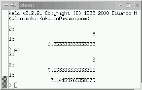 kalc se ejecuta desde la linea de comandos. Utiliza la librería readline y tiene