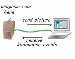 Every graphical X Window application reads at startup the environment variable DISPLAY to find out to which computer screen it should send its graphics. This together with the network capabilities of the X Window System makes it possible to run graphical applications remotely. That is you use the CPU power of one machine while you operate the application from an other one. The entire GUI (graphical user interface) appears on the machine from where you operate it. You don't notice that you use 2 computers.