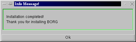 We hebben BORG op meer dan 70 PC's in ons computerlab geinstalleerd. Het is niet zinvol om de software op zoveel systemen met de hand te installeren. Erdal heeft een klein maar handig BASH-script ontwikkelt voor deze taak. Deze beschrijven we misschien nog eens in een ander artikel. He, we zijn Linux beheerder en kunnen gewoon niet leven zonder deze omgeving en de bijbehorende hulpprogramma's. Maar hier zullen we de grafische installie beschrijven.