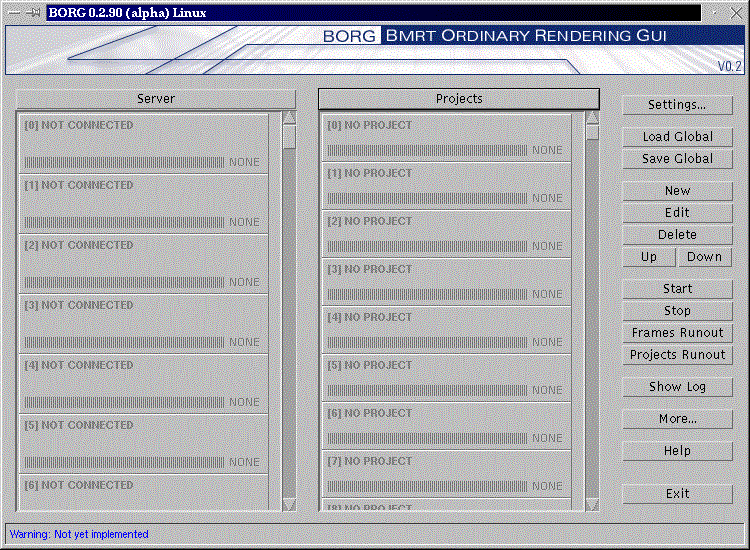BORG is nog steeds beta-software en heeft wat beperkingen. Een ervan is dat je de BORG Servers niet kunt starten vanaf de BORG Server Manager. Om ze te starten moet je ze starten op de computers waarop ze geinstalleerd staan. Dit zal misschien nog veranderen, als de auteurs BORG Servers schrijven die als daemon luisteren op een bepaalde poort en verbinding maken als dat nodig is. Een tweede, niet zo belangrijke beperkingen die we zagen toen we de labels in het Turks vertaalden was dat er herschaalproblemen waren. Een deel van de labels kon je niet zien.