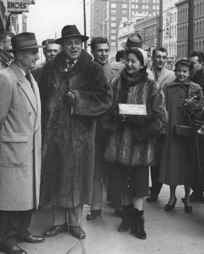 Right: Lou Emm joined the staff at WHIO on Oct. 22, 1941, as an