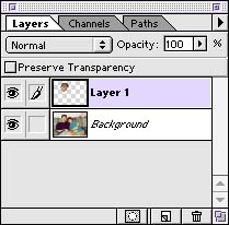 Man, that dude's got a big head! Let's fix that up a bit. If you're using Photoshop 5.0, select Free Transform under the Edit menu. If you're using Photoshop 4.0, select Free Transform under the Layer menu. When we moved Roc's head to the other pic, it planted it on a new layer. Make sure the proper layer is activated before you select Free Transform.